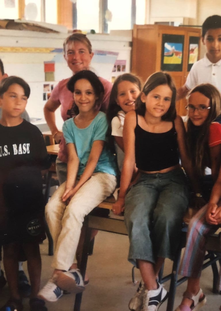 Photo d'archive, CM1 avec Léa tichit, Juliette Gallart et Clara frézal